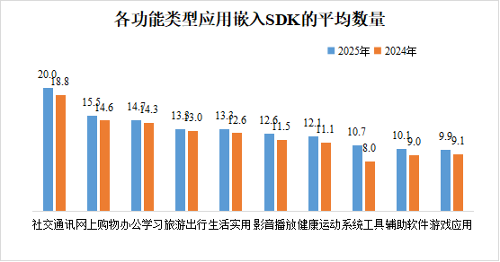 图1-3 2025年5月各功能类型应用嵌入SDK的平均数量